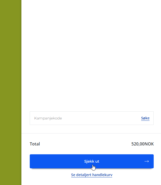 Når du har lagt alle retter med riktig antall i handlekurven, kan du gå videre ved å trykke på "sjekk ut".